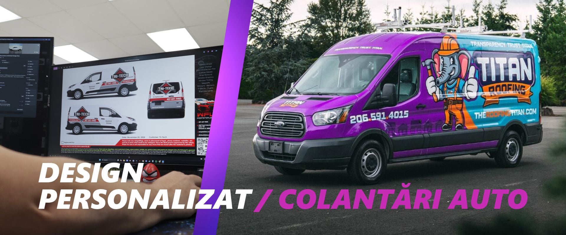Oferim servicii compelte adaptate brandului tau. De la concept grafic pana al colantare.